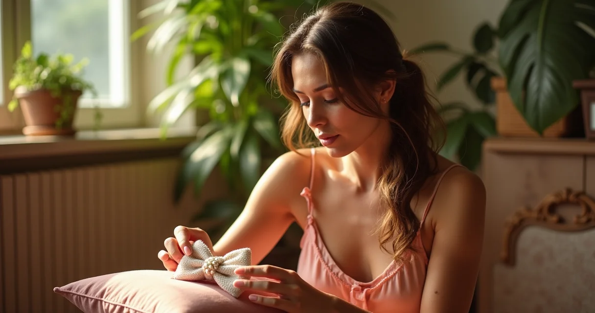 Limpeza Delicada: A limpeza deve ser feita com um pano úmido e, se necessário, um pouquinho de sabão neutro. Esfregue suavemente apenas a parte suja, evitando molhar as pérolas em excesso ou a base do laço. Seque imediatamente com um pano seco.